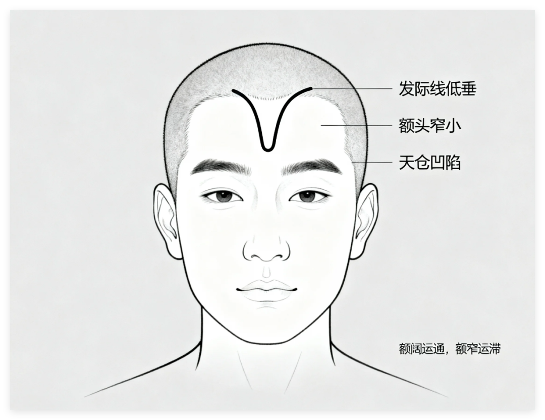 2、天庭低窄:天庭代表天仓,即上天带给你的财 库。如果一个人额头低窄,代表早年运势很差,心胸狭窄,为人处事吝啬,性格粗暴。这种人先天家庭难以提供大帮助,30岁之前往往囊中空空。