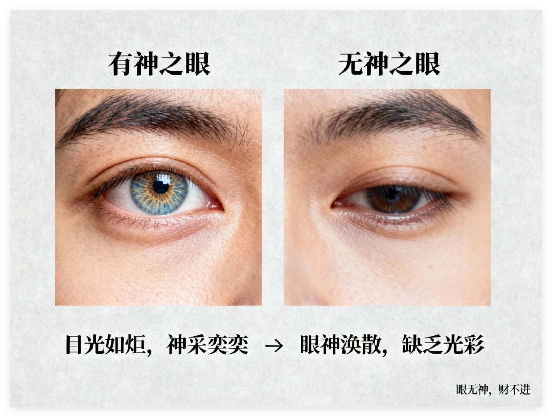 4、眼睛无神韵:有句话叫“面相富贵,90分看眼睛”。眼睛是心之苗,代表能够扭转乾坤的智慧。眼神好的人才能奋勇拼搏;如果眼神没有亮光,一般就缺乏赚钱的能力。